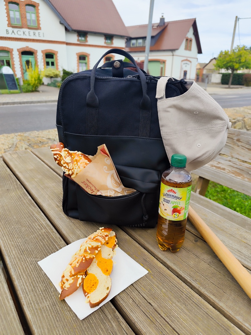 ...unsere Wanderstange ist ein Laugengebäck mit Käse überbacken